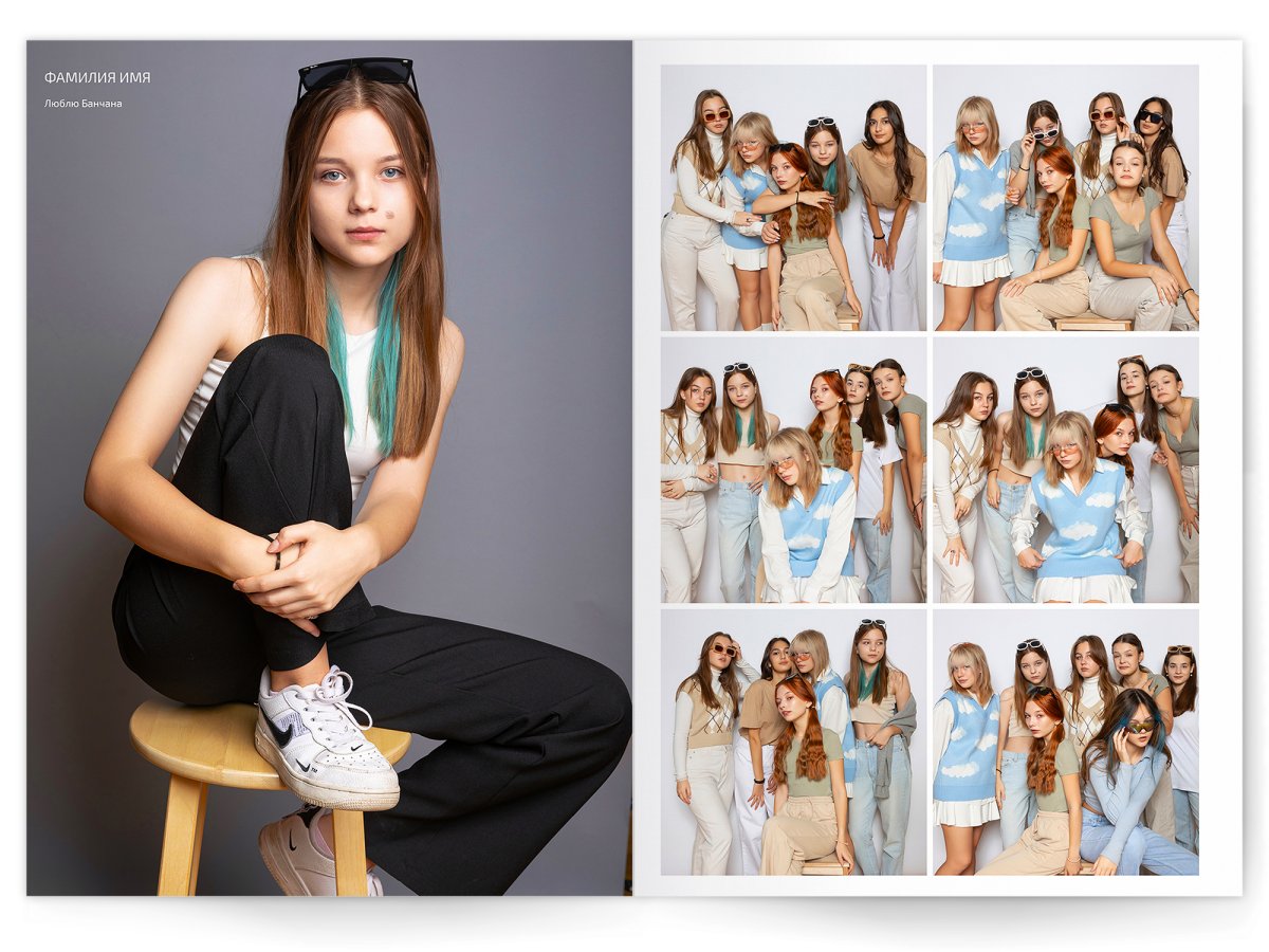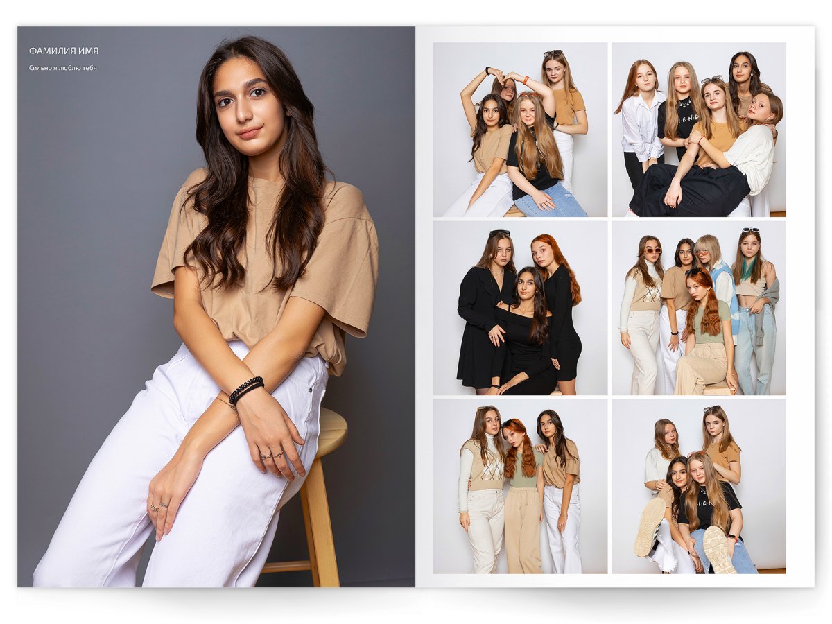 • 1 большой портрет на страницу и от 2 до 4 фото на выбор