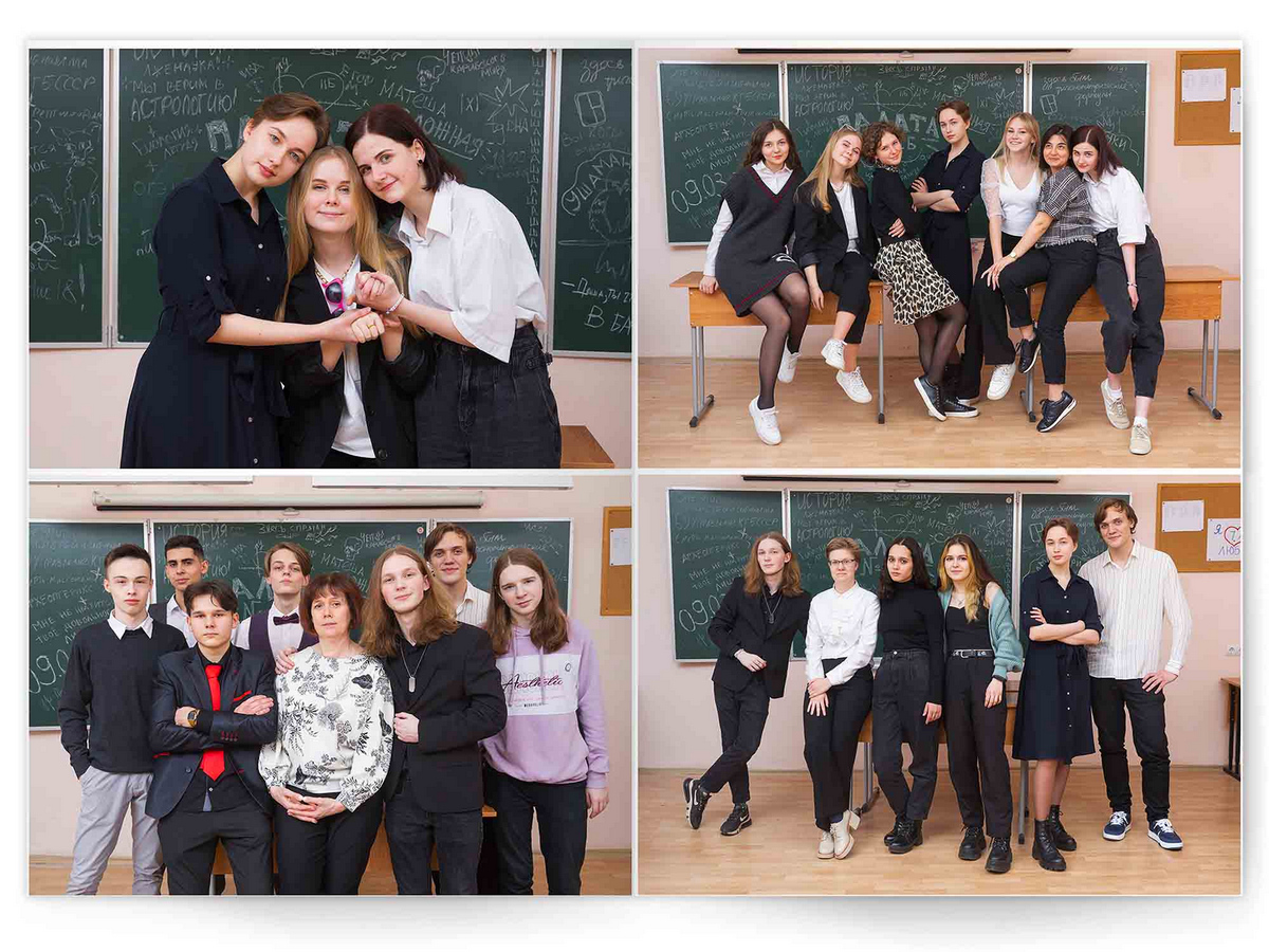 • Портреты всех одноклассников по 2 человека на страницу с историями-заметками