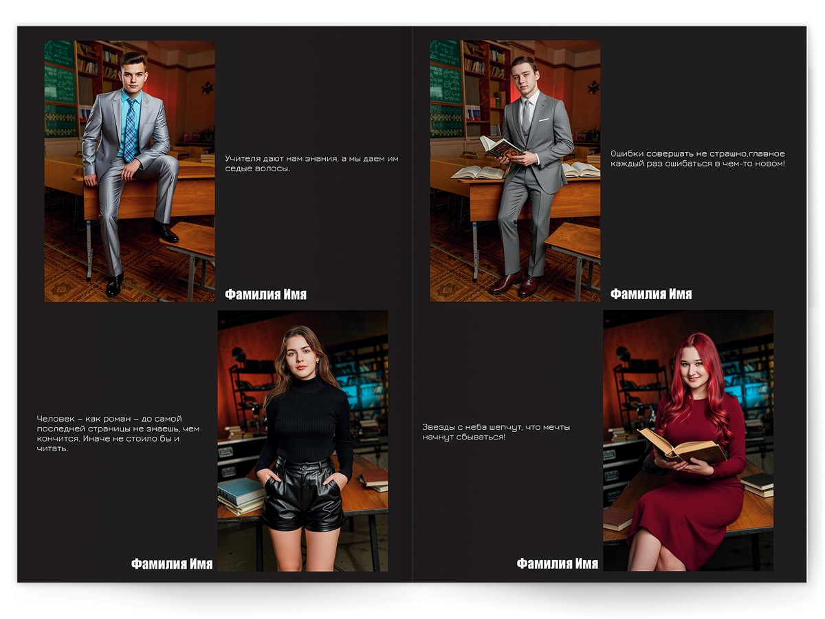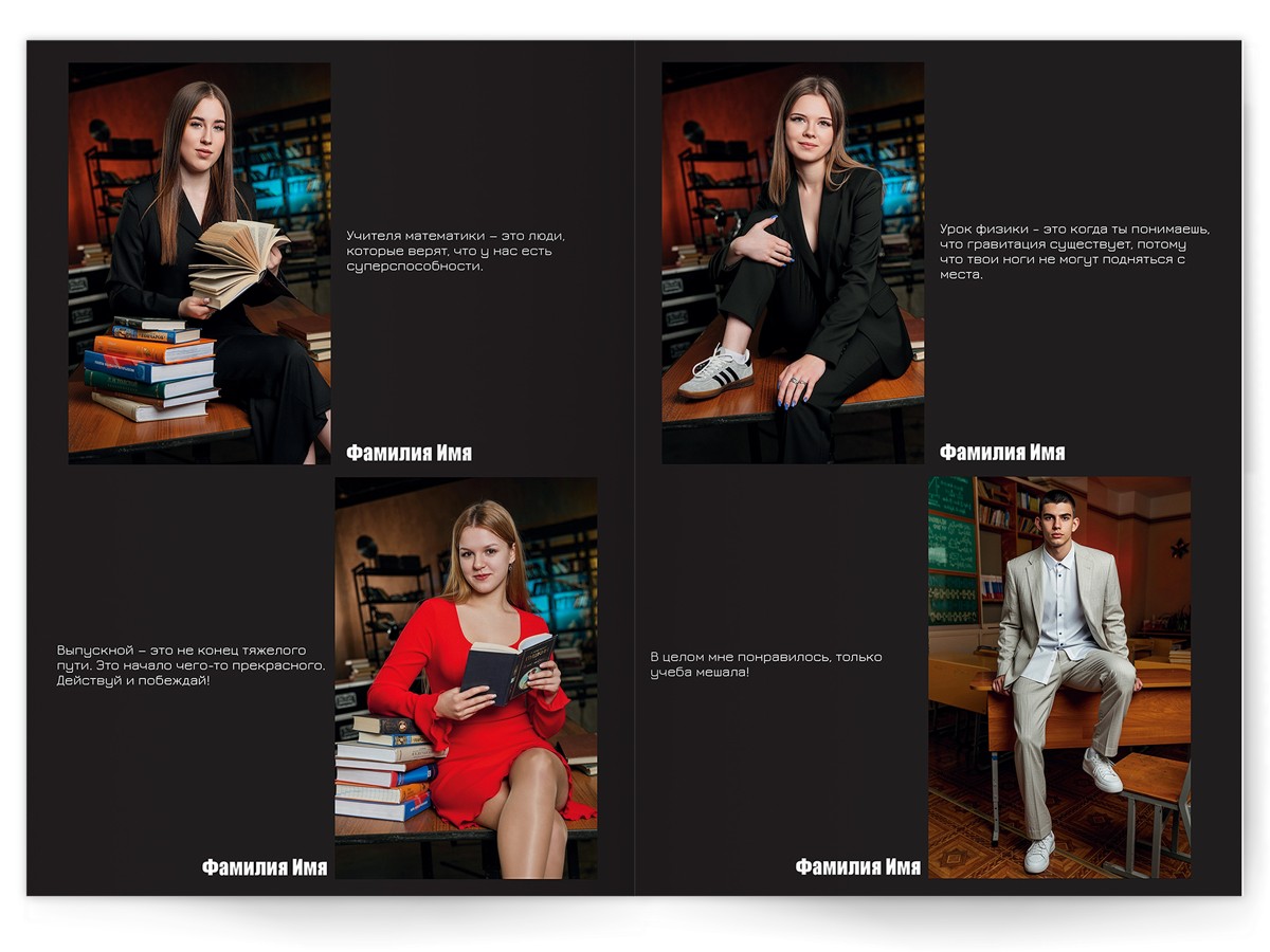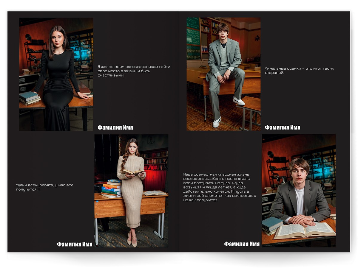 • Портреты всех одноклассников по 2 человека на страницу с историями-заметками